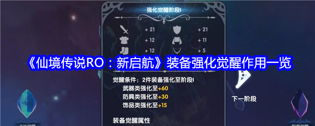 《仙境传说RO:新启航》装备强化觉醒作用一览《仙境传说RO:新启航》强化系统中,有一个独特的加成叫做【强化觉醒】,很多小伙伴不清楚这个有什么用,接下来给大家带来了《仙境传说RO:新启航》装备强化觉醒作用一览分享,一起来了解一下吧!