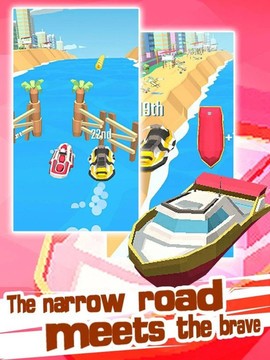 在一大片水域当中完成水上竞速的任务,就需要玩家有更多的冒险精神,而且游戏的玩法相对比较简单,每一辆赛艇的外观和性能都是可以不断优化的,但是你也需要在最短的时间内去奔向终点,并且将所有的对手都甩在身后。