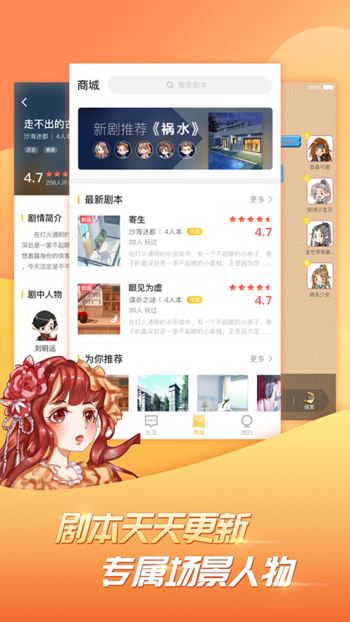 天天剧本杀APP由宁波山南水北网络科技有限公司开发,是一款提供角色扮演游戏的平台,致力于通过游戏的方式进行交友;游戏的玩法非常简单,一般情况下来说只需要四个人以上,创建房间的房主点击开始,房主挑选剧本,系统会将剧本中的角色随机分配给在在场的玩家,玩家们需要通过剧本内的场景描述、画面显示和每一位玩家所说的话进行分析,判断出谁是凶手并将TA找出,就能取得胜利,凶手则需要隐藏自己的身份到最后才能胜利;游戏门槛很低,游戏方法也非常的简单,每一位用户都能够学会玩法,相比于狼人杀游戏来说更轻松也更好玩;喜欢游戏也喜欢交友的你,还在等什么,快来本站下载吧。