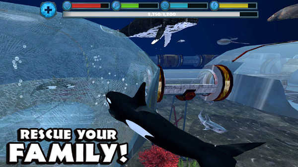 《终极虎鲸模拟器2中文版》是一款非常真实的海洋模拟生存游戏。你将成为一只虎鲸,在充满凶险的海洋深处寻找生存的机会。猥琐起来发育,等到成长的足够强大了,再去挑战一些大型的鱼类生物。游戏无论是场景还是风格都是很写实逼真的。还有很多的道具可以使用,让你躲避捕鱼船的猎杀。快来玩玩吧。
