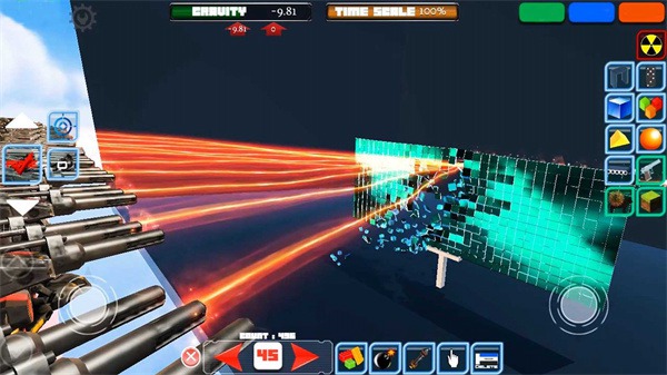 不仅有立方体还有各种奇奇怪怪的道具,在你建造建筑后可以去选择武器进行华丽的破坏的;