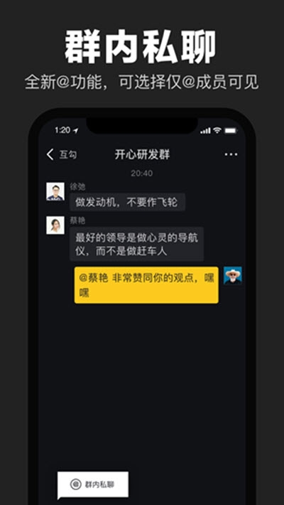 全新@功能,可选择@部分成员私密聊天,无需为临时需求创建多个群组。