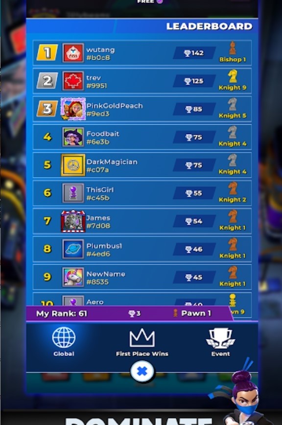 浑沌战棋收集奖杯、让你的排名从从棋子一路升到国王,登上全球联赛排行榜,并成为世界上的顶尖玩家!