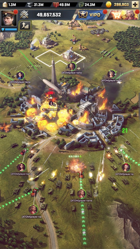 胜利之吻国际服是一款架空战争题材策略战斗游戏,作为国际服版本,游戏内可以匹配到其他国家的玩家,与外国玩家同台竞技,可为玩家带来与国服截然不同的游戏体验。游戏中玩家将驾驶自己的战机进行遨游太空,寻找足够的能源晶石,战机的性能和火力都可以通过晶石完成升级。游戏采用了一种突破性的自由控制系统,玩家可以在战场上指挥多个部队,行军,驻军,随心所欲的改变目标,调整作战策略。玩家间的战斗远比攻略游戏中虚拟的对手要更加复杂、更加吸引人。即便你足够强大你也依然需要其他玩家的帮助,因为战场中与你同时作战的将不仅只有一个敌人,甚至是一个联盟或者更多。 在游戏中玩家将前往世界上的各个重大战场,作为一名指挥官,为自己的的部队赢得荣耀,玩家除了需要训练不退提升科技外,还可以招募军官来提升士气,让她们领导你的部队攻打敌方阵线,书写你的不败传说。
