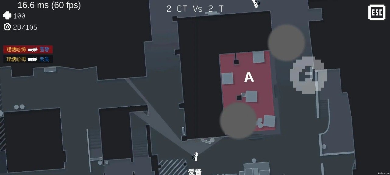 建议再加上m4a1和awp,awp没开镜时就没有瞄准线,开镜时就把视野缩到那条狙击瞄准线上,可以再完善一下对局,像原版游戏那样5V5,再做一个全频道或者队内聊天,建议再给子弹可以穿透的地方和投掷物可以扔过的物体边缘化为虚线,而那些不能穿过和扔投掷物的地方划为实线,再多增加几张地图。