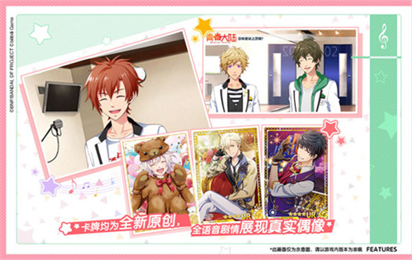 这是一款日系二次元风格的音乐节奏游戏。融合了养成、模拟经营等元素。你需要打造自己的偶像团队,点击音乐节奏完成通关,积累梦之卡卡牌,跟偶像进行互动,还能换装打扮,体验丰富的玩法内容。