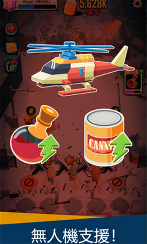 击杀丧尸获得狂暴血清,提升士兵属性招募各种能力的士兵,装备强力武器。