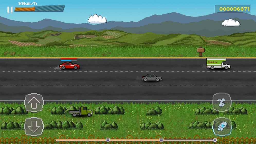 猎车地下车手是一个横版类的一个赛车游戏,最大的特点是游戏很小、操作简单。玩法虽然比较单调简单,画面也是比较马赛克风格,非常适合碎片化时间的人群无聊的时候去玩下。