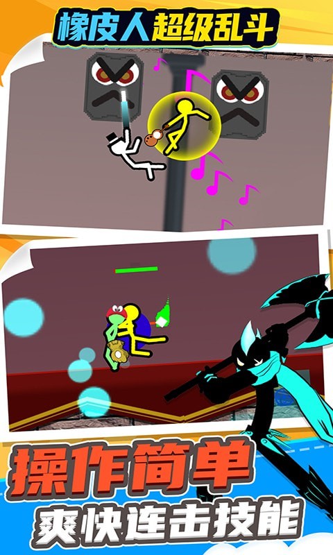 橡皮人超级乱斗是一款非常有趣的休闲游戏,游戏里玩家将会控制一个橡皮人进行闯关,游戏操作非常简单,可以轻松的打出华丽的技能,多种技能可以让你轻松的击败对手,还有多样化的地图,给你不一样的挑战体验,感兴趣的小伙伴们快来下载看看吧!