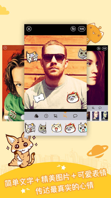 美图、美颜、搞怪、卖萌、滤镜、裁切、文字、贴图、泡泡框等让你的照片不再单一;