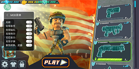 内置MOD菜单。无敌。无限金币。无限钻石。无限体力。无后坐力。无限子弹。解锁皮肤、武器。