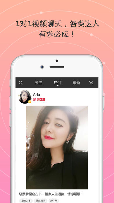 帮助,遇到问题时,你可以通过一对一视频聊天,寻找达人们为你解忧;