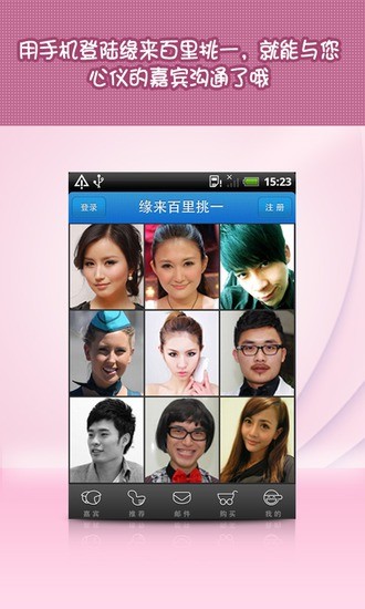 缘来百里挑一是缘来网与东方卫视百里挑一节目联合推出的一款移动婚恋交友应用;