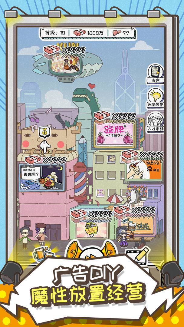 这就是广告安卓版这是一款趣味十足的趣味休闲游戏搞笑的风格,玩家在这款游戏中将会化身为做广告的大佬,游戏以模拟经营为核心玩法。