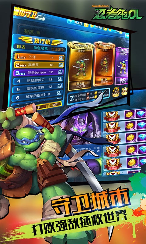 守卫城市 打败强敌拯救世界,倒计时红色警戒瞬时开启,邪恶力量正在袭击都市,忍者神龟怎能袖手旁观!携手抗敌,击败更多敌人,更可领取高额奖励!来吧英雄,我们需要你!