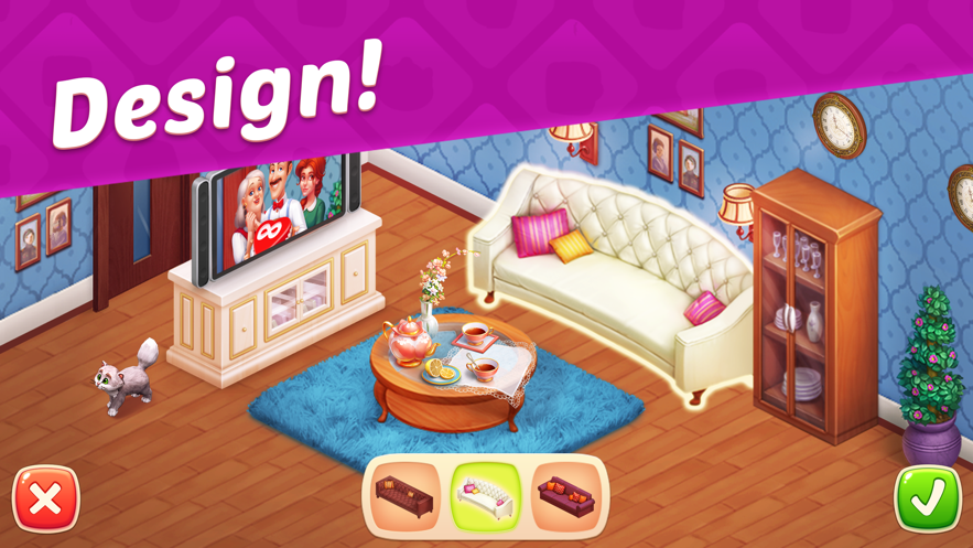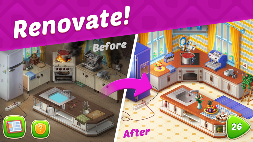 闯过色彩缤纷的三消关卡以整修和装饰豪宅内的房间、在闯关过程中解锁刺激家族故事的更多篇章!你还在等什么?别客气!