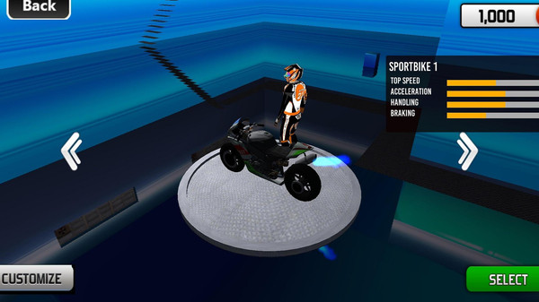 这是一款玩法非常多样的摩托车竞技游戏,玩家可以在这里掌握赛车的方法和技巧,并驾驶摩托车完成不同的挑战任务。