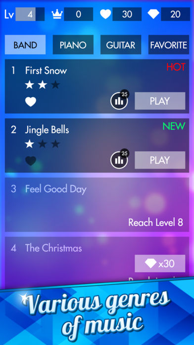 打开游戏模式来解锁成就和免费乐曲,或者只是放松并演奏您最喜爱的曲子;