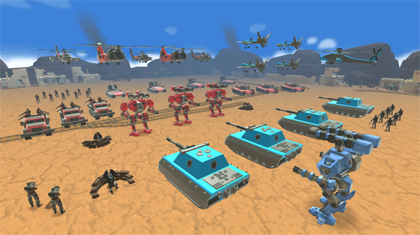 陆军战争模拟器是一款沙盒战争题材的休闲模拟类游戏,游戏提供了一个庞大的世界供玩家使用,而玩家将作为军队中的指挥官,根据敌人的军队来针对性的排兵布阵,制订相应的策略战术,展开激烈刺激的对决。游戏基于物理引擎打造,拥有真实打击感的音效和激动人心的背景音乐,以及真实的物理效果,而画面采用3D的低多边形画风,打造代入感的画面场景,而且操作也是设计的非常方便,让你只需轻松几步,即可将士兵、坦克、飞机、重武器等等,进行排兵布阵,搭配出一支强大的军队。