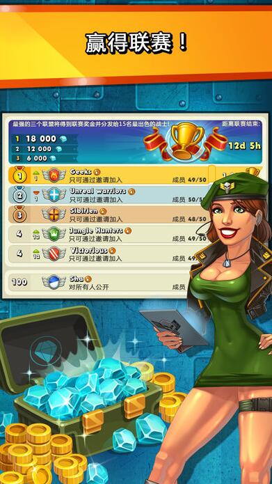 在丛林激战中,您可以将您的军事基地开发为牢不可破的要塞,与其他玩家战斗,将其基地夷为平地,组建强大的家族,并参加定期举办的联赛。