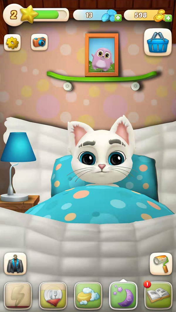 会说话的猫是一款治愈风格的宠物养成类手机游戏,游戏中你将领养一只可爱的猫咪,细腻精致的角色刻画毫毛都能看到,画风也是十分的可爱,丰富众多的养成活动,增加你和猫猫的亲密度。