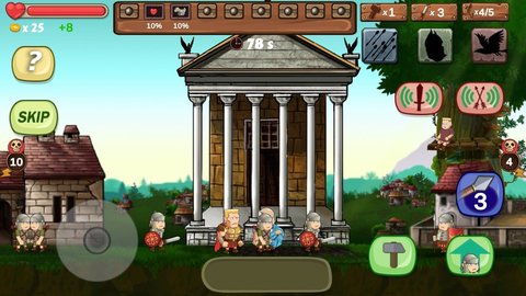 一款非常有趣好玩的策略塔防类即时战斗游戏。在这款游戏中,你将成为罗马帝国的军事指挥者,通过指挥你的军队来与前来侵略的敌人展开战斗,保卫你的帝国不受攻击。招募强大的士兵来加入到你的军队之中,制作各种盾牌弓箭武装他们,更加轻松的守卫。
