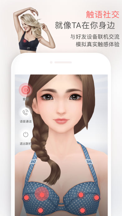 点点小触app安卓版为用户带来更加真实的触觉社交玩法,通过app与智能穿戴内衣相结合,让交友变得更真实,用户可以通过app接触到对方的身体,让在线社交真实可触,还有女性保护功能,为女性交友提供保护。