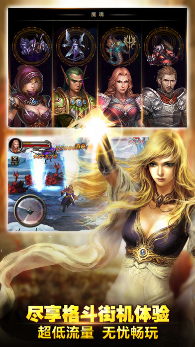 虚拟摇杆+四大技能键战斗操作,“震-顿-退”式受击反馈流程,竞技场PVP,多人副本PVE,格斗,就是这么简单!