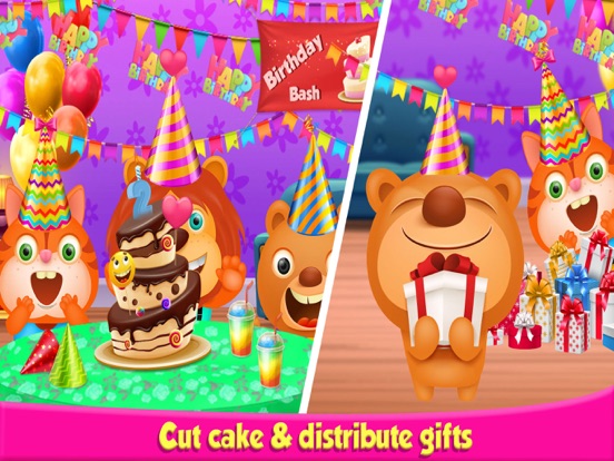 我们正在庆祝我们可爱的宠物生日! 我们需要你的装饰技巧来组织一个特别的生日派对,并邀请所有的家人和朋友来! 在这个派对上烘烤并设计最酷的生日蛋糕! 为聚会装扮你可爱的宠物。 使用包装纸和缎带将礼品装在包装盒中。 使用派对气球,扬声器和横幅装饰你的房子。