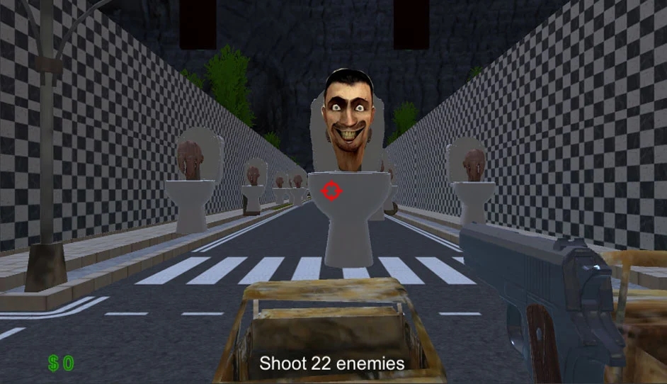 马桶人猎手是一个射击挑战类游戏,控制自己的角色和马桶怪物对战,可以选择很多种不同的武器来消灭马桶怪物,游戏的画质是卡通类型的,操作都很简单,只要消灭了马桶怪物就可以过关,过关可以解锁更多强悍的武器,会在多种场景下和马桶怪物对战。