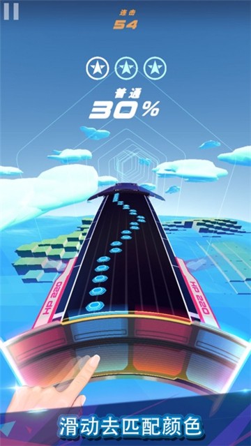 超震撼的视觉效果,每首歌都配备了不同风格的场景,背景声波与玩家的操作完美互动,具有超强的代入感。