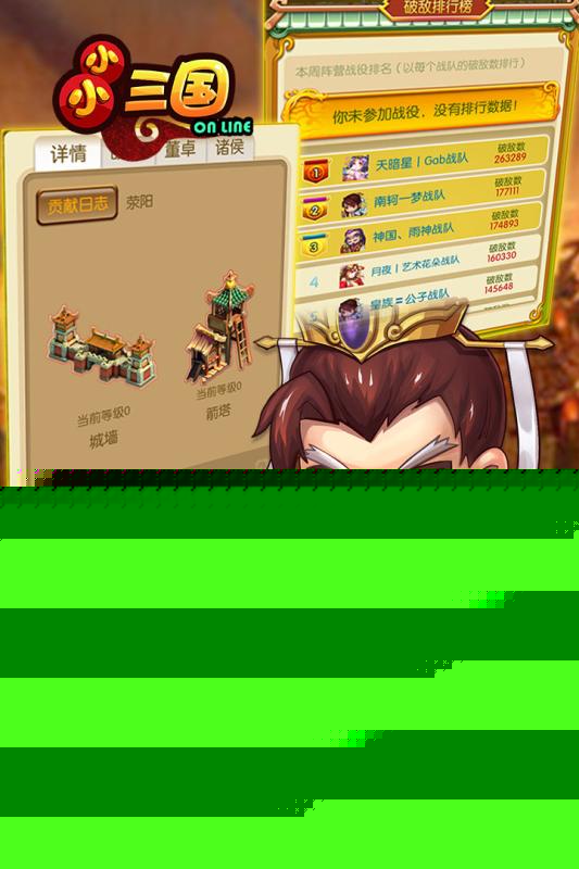 小小三国这款我们将要重返三国时代,成为群雄争霸中最弱的一个主公,开启自己的如意算盘一点点的富裕起来,最终吸引天下的闻名之士来投靠你,与其他的玩家一起开展宏图霸业,喜欢的朋友不妨来99安卓下载体验一下吧,感受一下这款游戏的魅力所在。