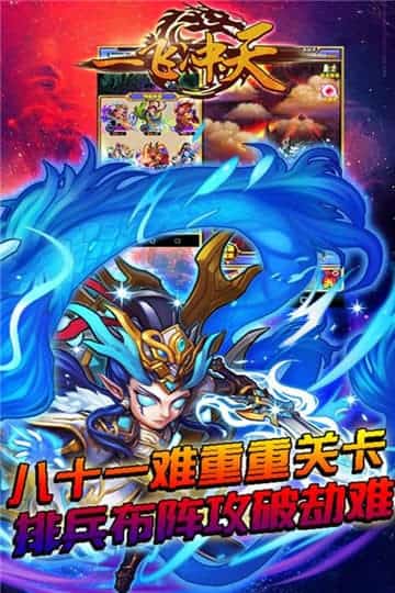 高清画面品质堪比端游,一飞冲天是由国内顶尖研发团队担任世界观和系统架构,聘请了知名团队刻画神、仙、妖三界的角色与场景。无论是玄幻的光影、水火等自然特效都拟真地展现出来,画面十分养眼。卡牌人设属于Q版卡通风格,每次进入新关卡时,里面的人物会依据剧情说出一些搞笑逗趣的对白,颠覆人们对传统西游人物的认知,放松紧张疲惫的大脑。