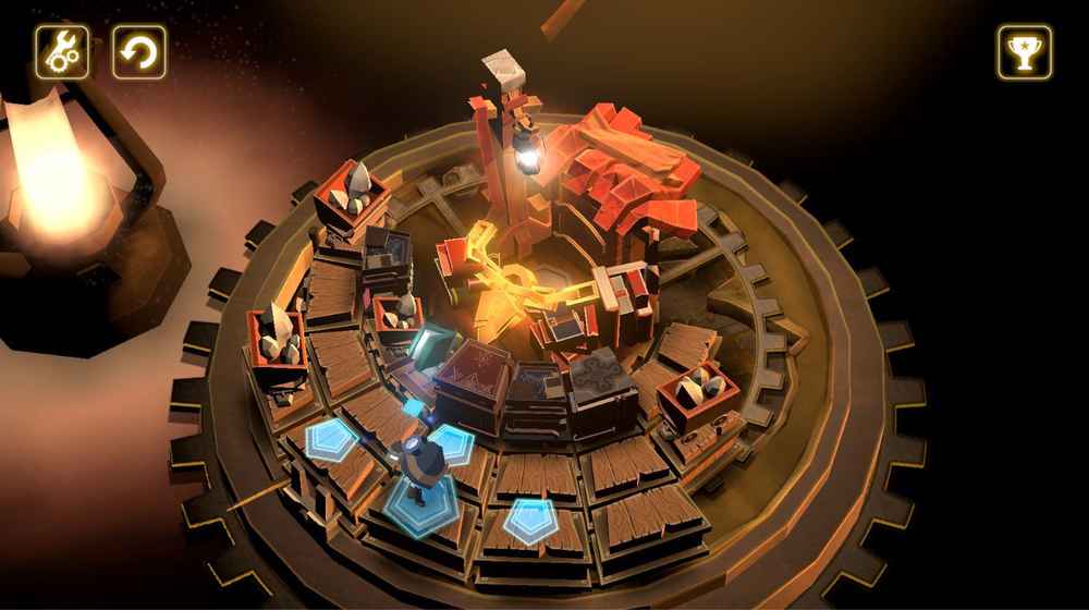 通过操控一个轮盘的转动来操控内圈地形的变化,就像是在解锁一个个的保险柜,有着特殊的密码;