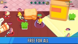 食物大战3D,这款游戏主要是以食物为主题类型的动作冒险游戏,在这款游戏里面你将要面对七个敌人,只有一个人才能逃脱出来,你需要使用五种不同的武器击杀五次敌人才可以赢得比赛,每一个角色都有着不同的特殊能力利用好自己的优势便可以获得更好的排名。
