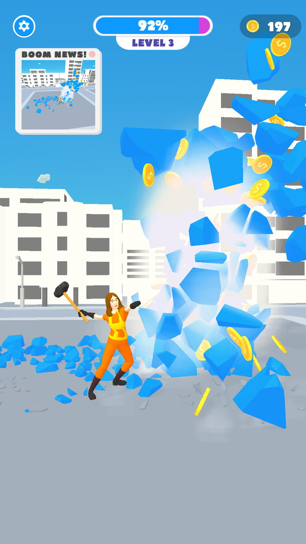 拆除的东西越难,得到的金币也就越多,可以用来升起改造铁锤;
