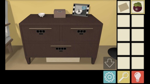 游戏的场景只有一个界面,房间的构造非常简单,主要包括小桌子,白沙发,每个抽屉都需要密码的大桌子,台灯和墙上的盆栽以及它们上面所摆放的东西组成而已;