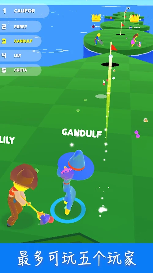 高尔夫比赛最新版(Golf Race)是一款由Madbox为玩家带来的休闲多人竞技类IO游戏。在高尔夫比赛手游中,玩家之间从期待开始打球,进一个球则向前挪动,第一个到达终点的玩家获得胜利。游戏里还有不同种类的球杆,不止于正经的高尔夫球杆,还有用步枪、棒棒糖等当球杆的,丰富的人物皮肤等着你来解锁。接下来本站小编就给大家带来《高尔夫比赛》游戏的具体介绍,感兴趣的小伙伴们速来本站下载体验吧~~
