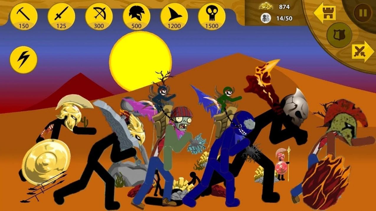 你拥有每个火柴人的控制权,控制你的军队形成一个编队或指挥一个单位建造、攻击敌人、挖掘黄金、学习击剑等,并通过训练弓箭手、法师甚至巨人来摧毁敌人的雕像,从而占领所有领土,占领所有领土。