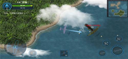 方向盘控制着飞机的飞行方向,通过地图可以观察到敌人的位置。