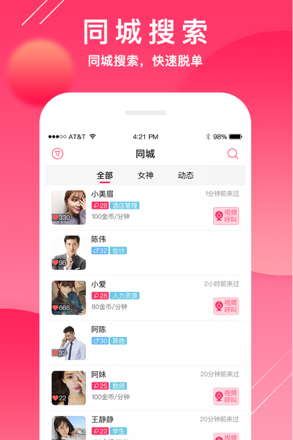 即时聊天:一键视频,看上了就直接撩!畅快沟通,简单直接,畅快互动。