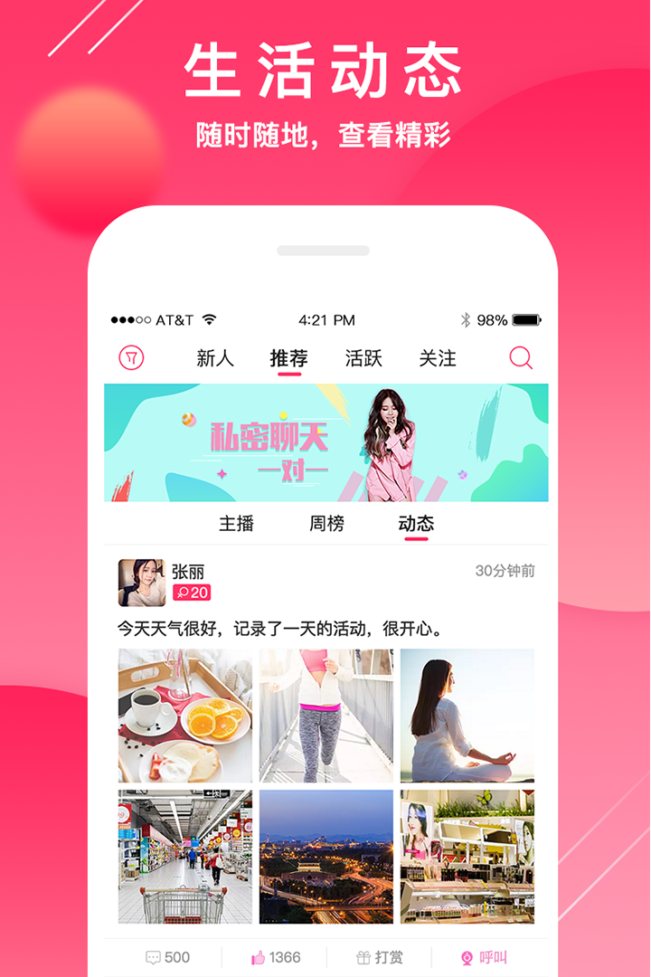 互动:用户可以通过查看视频主播动态,了解视频主播。通过送礼物,打赏视频主播。
