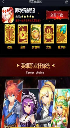 异次元战记是一款动作冒险游戏,异次元战记官方版是一款由二元次清纯少女建立奢华职业队打开经典回合制游戏对决的RPG游戏,罗马教皇、皇上、女祭司、女王、魔法师英雄人物岗位任你选,清纯少女唯美意境风格、丰富多彩的作战情景,给你提供精彩纷呈刺激的游戏感受。在游戏中,玩家扮演着不同的职业,探索着无尽的异次元世界,击败恶魔,在强大的神器装备帮助下逐步提升自己的实力,逐步成为更强大的角色。