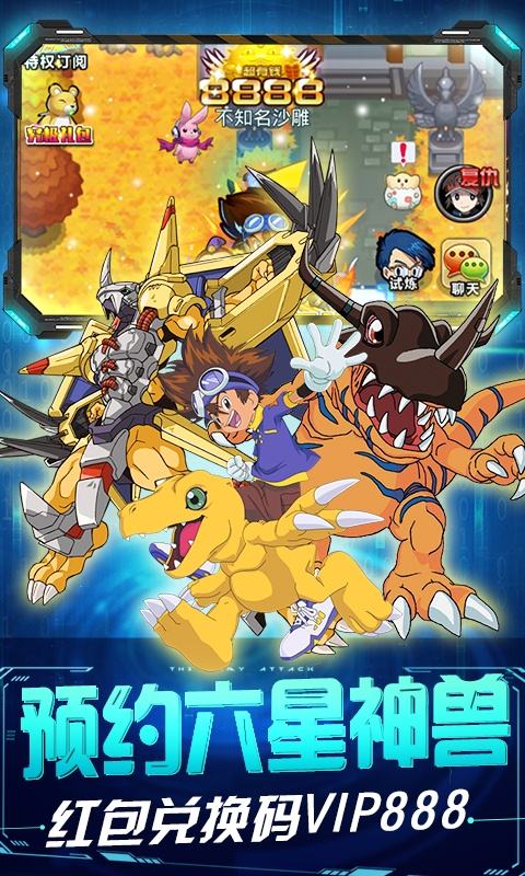 《恐龙宝贝向前冲送1888元充值》是一款以集数码兽养成、策略于一体的卡牌RPG手游。游戏上线就送满级VIP15+28888钻石+1亿金币,开局送100元充值红包和6星神兽礼包(100元充值礼包码:Bb100,6星神兽礼包码:Vip888)。天天签到领寻宝劵,无限送连抽,免费抽取极品数码兽/绝版翅膀皮肤等珍稀道具!究极神宠不是梦!扭蛋必出六星极品数码兽!冲级累计送1000元充值钻石红包!连续登录还有超值代金券、神兽礼盒等等海量福利资源及福利红包!再加上跌宕起伏的剧情故事,带你进入你记忆中的数码世界。暴龙兽、蔷薇兽、黑钢铁加鲁鲁等强大究极体全部化身并肩而战的伙伴,还有更多经典角色客串,快一起来守护数码世界吧!
