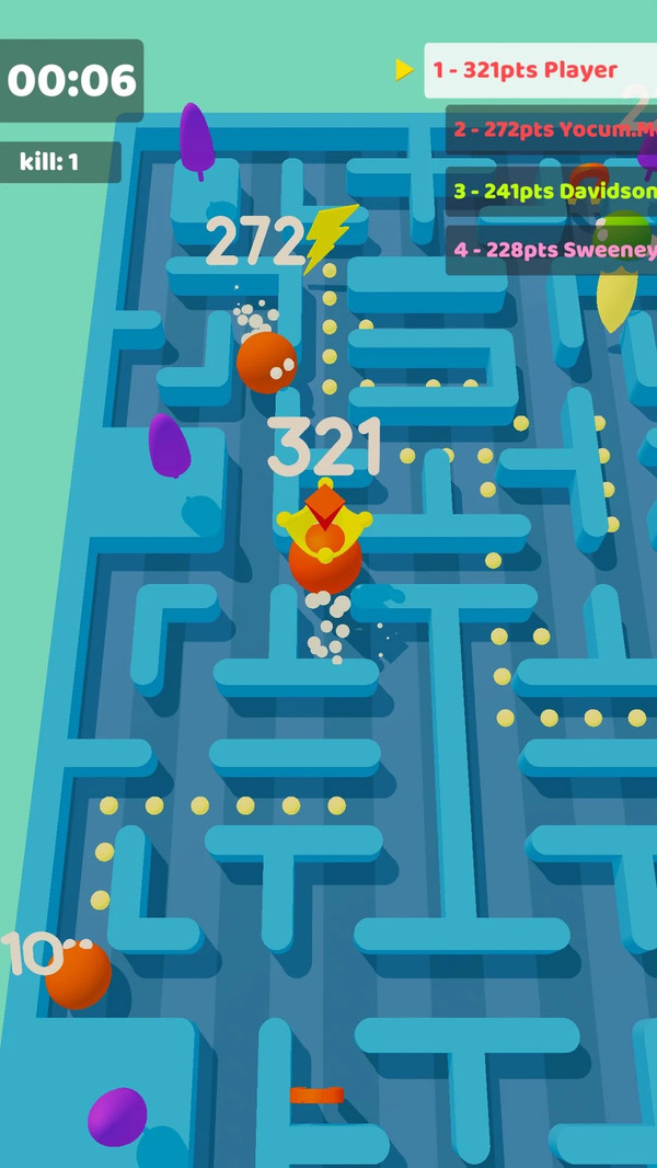 对方很可能会来追你,特别是当你附近的豆子不多的时候,他们会追的更凶