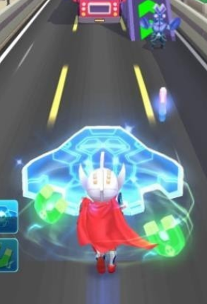 玩家需要控制奥特超人在场景中高速奔跑,躲避各种障碍和陷阱。