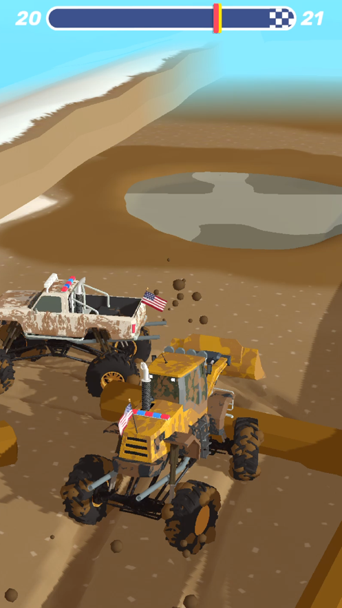 驾驶你的车辆在泥浆中跟其他的选手来一场赛车对决,用尽速度去碰撞它们。