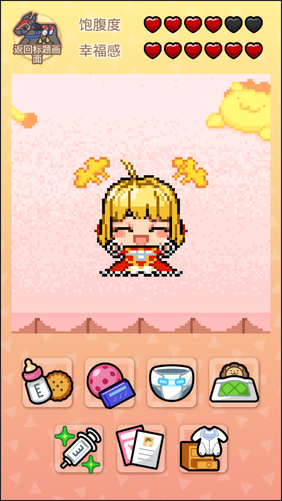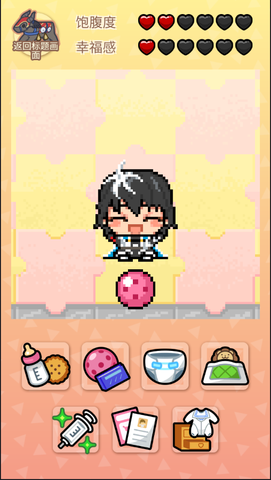 育成按钮分为吃饭,玩耍,换尿布,睡觉,治疗等等;每一个按钮都有自己专有的效果,对应master的各种要求,使用育成按钮照顾master吧