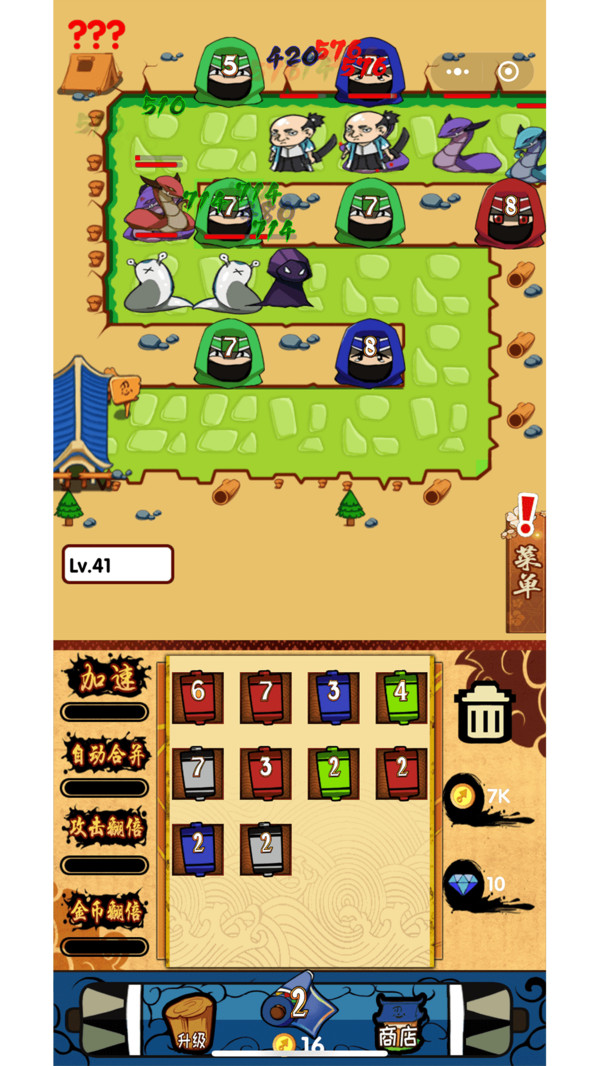 不断的合成最强的忍者,帮助自己在战斗的过程中更快的消灭敌人。