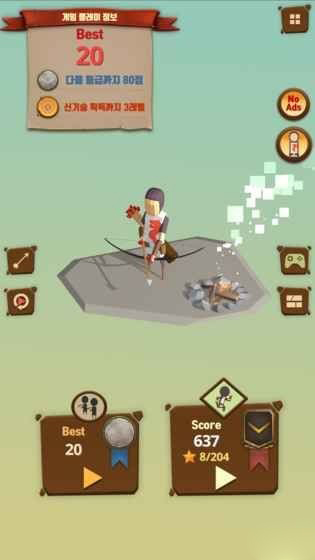 一款奇趣策略射箭游戏,在游戏中你可以体验各种花式射击的快感,无论是一箭将敌人穿成烧烤串,还是各种弯道箭你都可以玩出来,游戏的玩法非常简单,按住屏幕左右滑动即可拉弓和调整角度,松开手指就可以射击,关卡场景丰富,并且还加入了昼夜两种模式。